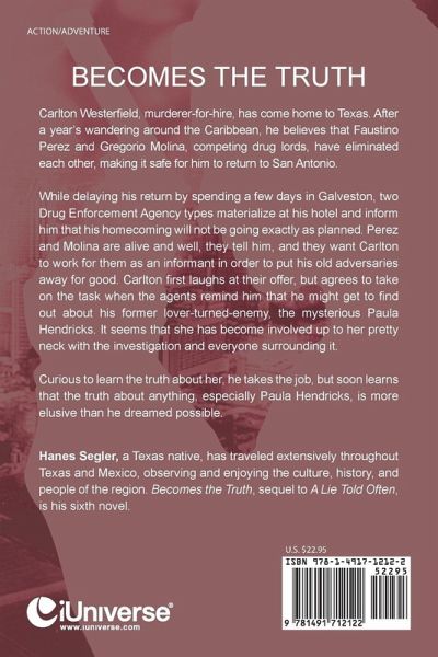 Carlton Westerfield, murderer-for-hire, has come home to Texas. After a year's wandering around the Caribbean, he believes that Faustino Perez and Gregorio Molina, competing drug lords, have eliminated each other, making it safe for him to return to San Antonio. While delaying his return by spending a few days in Galveston, two Drug Enforcement Agency types materialize at his hotel and inform him that his homecoming will not be going exactly as planned. Perez and Molina are alive and well, they tell him, and they want Carlton to work for them as an informant in order to put his old adversaries away for good. Carlton first laughs at their offer, but agrees to take on the task when the agents remind him that he might get to find out about his former lover-turned-enemy, the mysterious Paula Hendricks. It seems that she has become involved up to her pretty neck with the investigation and everyone surrounding it. Curious to learn the truth about her, he takes the job, but soon learns that the truth about anything, especially Paula Hendricks, is more elusive than he dreamed possible.