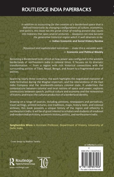 This book discusses the politics of space and identity in the borderlands of northeastern India between the early 1800s and the 1930s. Critiquing contemporary post-colonial histories where this region emerges as fragments, this book sees these perspectives as continuing to be entrapped in a civilizational approach to history writing. Beginning in the pre-colonial period where it focuses on the negotiated character of state-formation during the Mughal imperium, the book then enters the space of the colonial where it looks at some of the early interventions of the East India Company. The analysis of markets as transmitters of authority highlights an important argument that the book makes. Peasantization and the introduction of the notion of the sedentary agriculturist as the productive subject also come up for a detailed discussion, along with economic change and property settlements, which are seen as important ways through which the institution of colonial legality got entrenched in the region. Underlining the interface between the political economy and practices of cultural studies, the book also explores the connections between speech, production of counter narratives of historical memory, political culture and economy, with a focus on the cultural production of a borderland identity that was marked by hyphenated existence between proto- 'Bengal' and proto- 'Assam'.