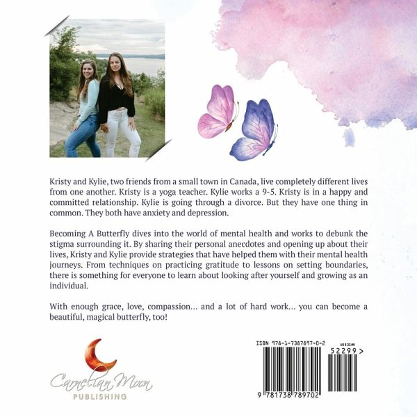 Kristy and Kylie, two friends from a small town in Canada, live entirely different lives from each other. Kristy is a yoga teacher. Kylie works a 9 to 5. Kristy is in a happy, committed relationship. Kylie is going through a divorce. But they do have one thing in common. They both live with anxiety and depression. Becoming a Butterfly is the personal story of Kristy and Kylie, sharing their journeys, anecdotes, exercises, and activities that have helped them navigate and open up about their lives and their personal struggles, Kristy and Kylie's book encourages readers to take steps to live a more balanced life. They provide strategies that have helped them during their mental health journeys. From techniques for practicing gratitude to lessons about setting personal boundaries, readers will discover the importance that looking after yourself first, and growing as the individual you are meant to be, can bring to your life. With enough grace, love, compassion... Kristy and Kylie encourage you to join them in becoming beautiful, magical butterflies. **From the Publisher: Dear readers, please note that this book is NOT intended or implied to replace your Health Care professional's advice or guidance and is presented ONLY from the authors' viewpoints, perspectives, and personal journeys regarding how they have dealt with their health and wellness challenges. This book is not intended to diagnose, treat, or is otherwise meant to act as or to serve in any capacity as a comprehensive or diagnostic publication. Readers seeking an in-depth look at Mental Health from a clinical perspective will be best served by seeking out books written for and by the Medical community that directly address Mental Health from these clinically-based perspectives. Reaching out to a Mental Health professional is essential to ensure your mental health and wellness care is appropriate for you. The authors encourage readers to discuss a mental health and wellness protocol specific to their particular needs before undertaking any self-care programs or techniques, including those shared within this publication.