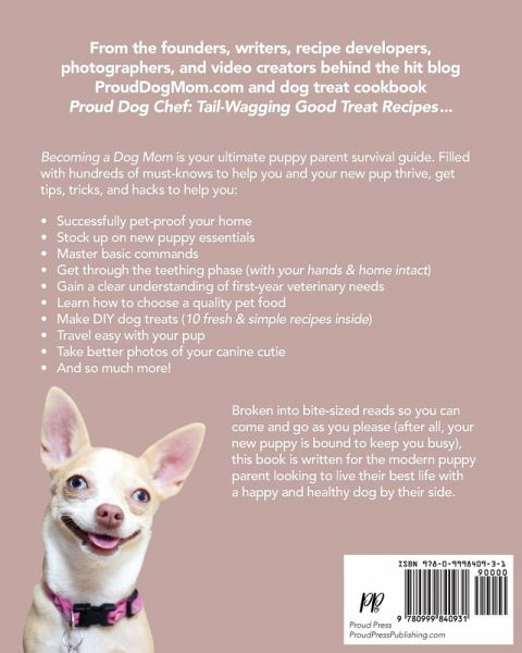 From the founders of the hit blog ProudDogMom.com and authors of the dog treat cookbook Proud Dog Chef: Tail-Wagging Good Treat Recipes, Becoming a Dog Mom is your ultimate puppy survival guide. This read is filled with hundreds of must-knows for first-time pet parents, or anyone with a young pup on their paws. The many tips, tricks, and hacks packed inside will help you successfully pet-proof your home, create a daily schedule, master basic commands, survive the teething phase, gain a clear understanding of first-year veterinary needs, choose quality pet food, make DIY dog treats and toys, and so much more. Broken into bite-sized reads so you can come and go as you please, this book is written for the modern puppy parent looking to live their best life with a happy and healthy dog by their side. ¿¿Contents Chapter 1: So, You're Getting a Puppy Chapter 2: Your First Night Together Chapter 3: A Dog Mom's Secret Weapon for Success Chapter 4: Who's a Good Pup?! Chapter 5: Puppy Biting: This Too(th) Shall Pass Chapter 6: Lookin' Spiffy Chapter 7: Yappy Hour Chapter 8: A Trip to the Vet Chapter 9: Doggy Dining: What's on the Menu? Chapter 10: Puppy Exercise: Mind & Body Chapter 11: Cleaning with Canines Chapter 12: Traveling With Dogs Chapter 13: Pup-arazzi
