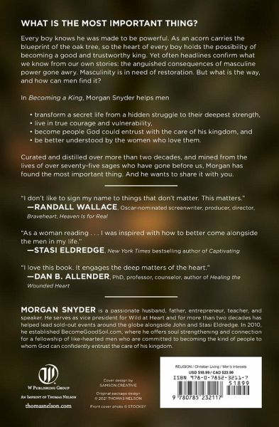 Morgan Snyderâ s Becoming a King unabashedly speaks directly to men, teaching them the life-changing truth about the power that God intends for them to responsibly step into for his kingdom, while also giving women an honest peek behind the curtain into the lives and hearts of the men they know and love.