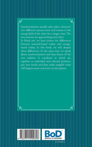 Synchronization usually takes place whenever two different systems meet and remain in the energy field of the other for a longer time. The two systems are approaching each other.In Book one, we have shown the differences between material-based reality and energy-based reality. In this book, we will deepen these differences. At the same time, we speak about synchronization and thus fusion of the two realities. A condition in which we, together as embodied and ethereal pioneers, put into words and thus make tangible what will happen more and more on this planet.