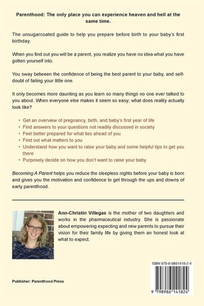 Parenthood: The only place you can experience heaven and hell at the same time. The unsugarcoated guide to help you prepare before birth to your baby's first birthday. When you find out you will be a parent, you realize you have no idea what you have gotten yourself into. You sway between the confidence of being the best parent to your baby, and self-doubt of failing your little one. It only becomes more daunting as you learn so many things no one ever talked to you about. When everyone else makes it seem so easy; what does reality actually look like? ¿Get an overview of pregnancy, birth, and baby's first year of life ¿Find answers to your questions not readily discussed in society ¿Feel better prepared for what lies ahead of you ¿Find out what matters to you ¿Understand how you want to raise your baby and some helpful tips to get you there ¿Purposely decide on how you don't want to raise your baby Becoming A Parent helps you reduce the sleepless nights before your baby is born and gives you the motivation and confidence to get through the ups and downs of early parenthood.