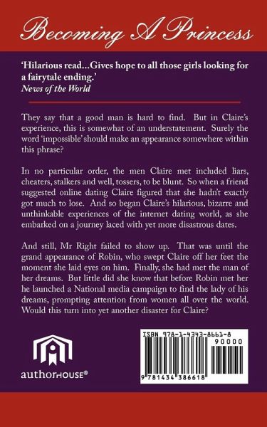 They say that a good man is hard to find. But in Claire's experience, this is somewhat of an understatement. Surely the word 'impossible' should make an appearance somewhere within this phrase? In no particular order, the men Claire met included liars, cheaters, stalkers and well, tossers, to be blunt. So when a friend suggested online dating Claire figured that she hadn't exactly got much to lose. And so began Claire's hilarious, bizarre and unthinkable experiences of the internet dating world, as she embarked on a journey laced with yet more disastrous dates. And still, Mr Right failed to show up. That was until the grand appearance of Robin, who swept Claire off her feet the moment she laid eyes on him. Finally, she had met the man of her dreams. But little did she know that before Robin met her he launched a National media campaign to find the lady of his dreams, prompting attention from women all over the world. Would this turn into yet another disaster for Claire?
