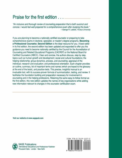 This clear and concise study guide provides sample examinations and guidance for counsellors who wish to become certified by either the Council for the Accreditation of Counseling and Related Education (CACREP) or the National Board for Certified Counselors (NBCC), the major counsellor accreditation institutions in the United States. This Second Edition brings up to date the names of key organizations, and adds new information relevant to changes in the counsellor certification exam.