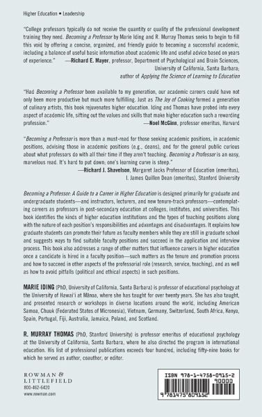 Preface Chapter 1: Higher Education's Significant Contexts Part I: Preparing to Become a Professor Chapter 2: Types of Higher Education Institutions Chapter 3: Types of Teaching Positions Chapter 4: Profiting from Graduate School Chapter 5: Search Committees, CVs, Interviews, and Job Talks Part II: On-the-Job: Research/Creativity, Teaching, and Service Roles Chapter 6: Publishing, Performing, and Products Chapter 7: Teaching Chapter 8: Service Obligations Part III: Influential Issues Chapter 9: Ethical and Legal Matters Chapter 10: Professorial Politics Chapter 11: Promotion and Tenure Part IV: Postscript Chapter 12: The Future: Careers in Higher Education References Index