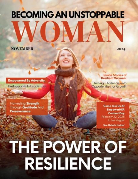 Becoming An Unstoppable Woman MagazineNovember 2024 Edition Welcome to the November 2024 edition of Becoming an Unstoppable Woman Magazine, your essential source for empowerment, inspiration, and transformation. This issue centers on The Power of Resilience, featuring "Inside Stories of Resilient Women: Turning Challenges into Opportunities for Growth." Within these pages, we highlight the extraordinary journeys of women who have faced adversity and emerged stronger, showcasing how resilience can lead to personal and professional development. As you read through these powerful narratives, you'll find motivation and encouragement in the stories of women who are truly "Empowered by Adversity, Unstoppable in Leadership." This edition also invites you to join us for EmpowerHER Content Day on February 22, 2025, in Las Vegas, an event designed for connection, collaboration, and growth among women dedicated to making a difference in the digital world. Empowerment begins here, and we are excited to inspire and uplift you through the remarkable achievements of women from all walks of life.
