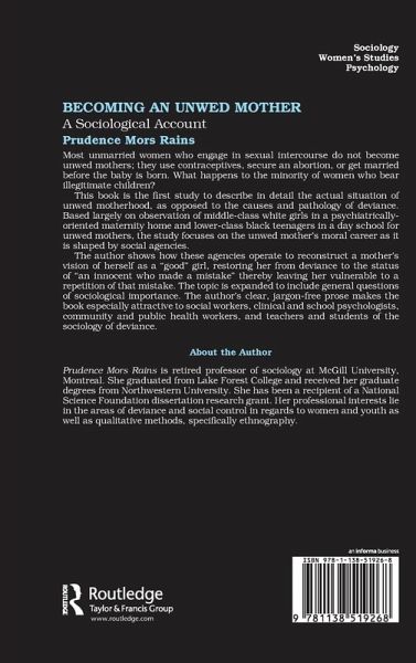 Most unmarried women who engage in sexual intercourse do not become unwed mothers; they use contraceptives, secure an abortion, or get married. What happens to the minority of women who bear illegitimate children? This book presents a study to describe the actual situation of unwed motherhood, as opposed to the causes and pathology of deviance.