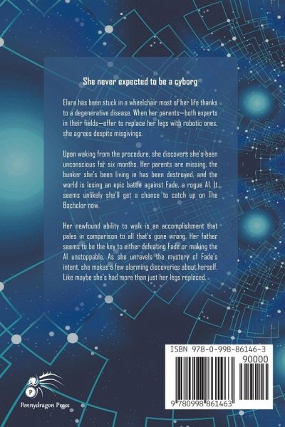 Elara has been stuck in a wheelchair most of her life thanks to a degenerative disease. When her parents-both experts in their fields-offer to replace her legs with robotic ones, she agrees despite misgivings. Upon waking from the procedure, she discovers she's been unconscious for six months. Her parents are missing, the bunker she's been living in has been destroyed, and the world is losing an epic battle against Fade, a rogue AI. It seems unlikely she'll get a chance to catch up on The Bachelor now. Her newfound ability to walk is an accomplishment that pales in comparison to all that's gone wrong. Her father seems to be the key to either defeating Fade or making the AI unstoppable. As she unravels the mystery of Fade's intent, she makes a few alarming discoveries about herself. Like maybe she's had more than just her legs replaced.