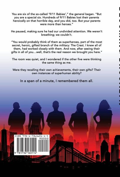 Eighteen-year-old Brooklyn never knew her father. Rex Blackburn died in the 9/11 attacks four months before she was born. And even though she never met him, she always dreamed about what he must have been like before he died. In her mind, he was a hero. Little did she know. After an attack at a 9/11 memorial gala, Brooklyn learns her father had been a member of an elite, anti-terrorism, military task force, made up of a very select group of people who had superhuman abilities. On the day the towers fell, he died using his power to save people. The Army believes she inherited his gift, and Brooklyn is invited to train at West Point in order to hone her skills. Knowing deep down she is different than anyone else her age and wanting to learn more about a father she never knew, she readily agrees to become a cadet at the prestigious military academy. She and five other 9/11 babies strengthen their superhuman abilities and spend weeks preparing themselves for their future in the army, fighting terrorists at home and abroad. And in the process of training, they identify with their deceased parents in a way they never knew they could. Brooklyn knows she'll go to war someday, but when terrorists find out about the group's gifts, they don't bother to wait. They bring the war to West Point.