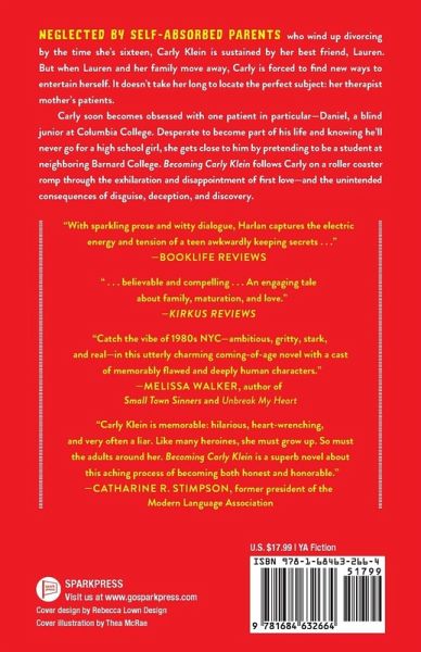 Fans of contemporary coming-of-age young adult fiction will root for Carly Klein as she fights to find her place in the world--even if she has to lie to everyone in her life to get there. Neglected by self-absorbed parents who wind up divorcing by the time she's sixteen, Carly Klein is sustained by her best friend, Lauren. But when Lauren and her family move away, Carly is forced to find new ways to entertain herself. It doesn't take her long to locate the perfect subject: her therapist mother's patients. Carly soon becomes obsessed with one patient in particular--Daniel, a blind junior at Columbia College--and, desperate to become part of his life and knowing he'll never go for a high school girl, gets close to him by pretending to be a student at neighboring Barnard College. Becoming Carly Klein follows Carly on a roller coaster romp through the exhilaration and disappointment of first love--and the unintended consequences of disguise, deception, and discovery.