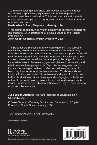 The personal and professional are woven together in this collection of scholarly narratives by teacher educators who share their early critical experiences and model teaching practices to support continued resistance and possibilities in teacher education. Each chapter suggests practical tools and encourages readers to reflect on their own journeys of becoming transformational teacher educators.