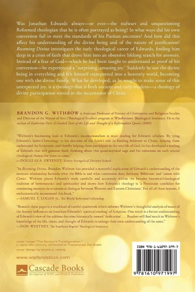 Was Jonathan Edwards always--or ever--the stalwart and unquestioning Reformed theologian that he is often portrayed as being? In what ways did his own conversion fail to meet the standards of his Puritan ancestors? And how did this affect his understanding of the divine being and of the nature of justification? Becoming Divine investigates the early theological career of Edwards, finding him deep in a crisis of faith that drove him into an obsessive lifelong search for answers. Instead of a fear of God-which he had been taught to understand as proof of his conversion-he experienced a "surprising, amazing joy." Suddenly he saw the divine being in everything and felt himself transported into a heavenly world, becoming one with the divine family. What he developed, as he sought to make sense of this unexpected joy, is a theology that is both ancient and early modern-a theology of divine participation rooted in the incarnation of Christ.