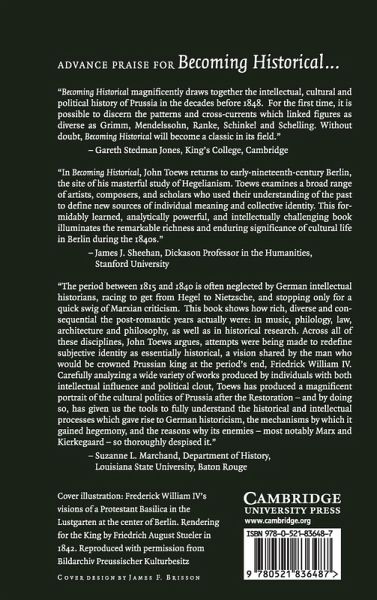 List of illustrations; Preface; Acknowledgements; Philosophical prologue: historical ontology and cultural reformation: Schelling in Berlin, 1841-5; Part I. Historicism in Power: 1840 and the Historical Turn in Prussian Cultural Politics: 1. Nation, church, and the politics of historical identity: Frederick William IV's vision of cultural reformation; 2. 'Redeemed nationality': Christian Bunsen and the transformation of ethnic peoples into ethical communities under the guidance of the historical principle; Part II. Architectural and Musical Historicism: Aesthetic Education and Cultural Reformation: 3. Building historical identities in space and stone: Schinkel's search for the shape of ethical community; 4. The generation of ethical community from the spirit of music: Mendelssohn's musical constructions of historical identity; Part III. Law, Language, and History: Cultural Identity and the Self-Constituting Subject in the Historical School: 5. The tension between immanent and transcendent subjectivity in the Historical School of Law: from Savigny to Stahl; 6. The past as a foreign home: Jacob Grimm and the relation between language and historical identity; 7. Ranke and the Christian-German state: contested historical identities and the transcendent foundations of the historical subject; Antiphilosophical Epilogue: historicizing self-identity in Kierkegaard and Marx, 1841-6; Index.
