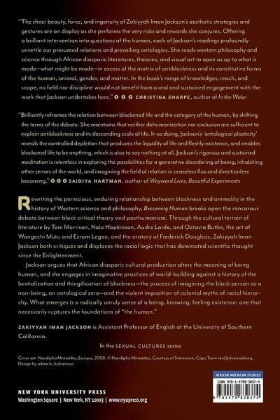 Zakiyyah Iman Jackson is Assistant Professor of English at the University of Southern California. Her work has appeared in Feminist Studies, Gay and Lesbian Quarterly, Qui Parle: Critical Humanities and Social Sciences, South Atlantic Quarterly, and Catalyst: Feminism, Theory, and Technoscience .