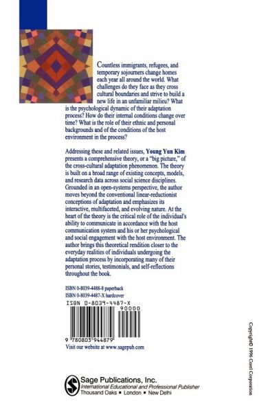 This book looks at the movements of immigrants and refugees and the challenges they face as they cross cultural boundaries and strive to build a new life in an unfamiliar place. It focuses on the psychological dynamic underpinning their adaptation process; how their internal conditions change over time; the role of their ethnic and personal backgrounds and of the conditions of the host environment affecting the process. Addressing these and related issues, the author presents a comprehensive theory, or a `big picture', of the cross cultural adaptation phenomenon.