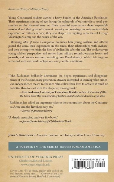 Young Continental soldiers carried a heavy burden in the American Revolution. Their experiences of coming of age during the upheavals of war provide a novel perspective on the Revolutionary era, eliciting questions of gender, family life, economic goals, and politics. "Going for a soldier" forced young men to confront profound uncertainty, and even coercion, but also offered them novel opportunities. Although the war imposed obligations on youths, military service promised young men in their teens and early twenties alternate paths forward in life. Continental soldiers' own youthful expectations about respectable manhood and their goals of economic competence and marriage not only ordered their experience of military service; they also shaped the fighting capacities of George Washington's army and the course of the war. Becoming Men of Some Consequence examines how young soldiers and officers joined the army, their experiences in the ranks, their relationships with civilians, their choices about quitting long-term military service, and their attempts to rejoin the flow of civilian life after the war. The book recovers young soldiers' perspectives and stories from military records, wartime letters and journals, and postwar memoirs and pension applications, revealing how revolutionary political ideology intertwined with rational calculations and youthful ambitions. Its focus on soldiers as young men offers a new understanding of the Revolutionary War, showing how these soldiers' generational struggle for their own independence was a profound force within America's struggle for its independence.