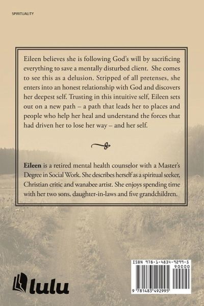 Eileen believes she is following God's will by sacrificing everything to save a mentally disturbed client. She comes to see this as a delusion. Stripped of all pretenses, she enters into an honest relationship with God and discovers her deepest self. Trusting in this intuitive self, Eileen sets out on a new path - a path that leads her to places and people who help her heal and understand the forces that had driven her to lose her way - and her self.