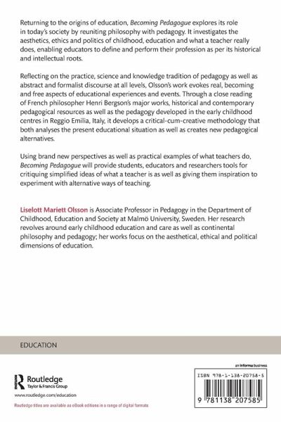 Returning to the origins of education, Becoming Pedagogue explores its role in todayâ s society by reuniting philosophy with pedagogy. It investigates the aesthetics, ethics and politics of childhood and education, enabling educators to define and perform their profession as per its historical and intellectual roots.
