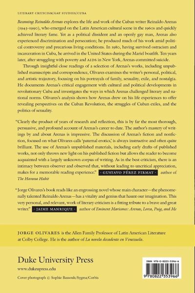 Becoming Reinaldo Arenas explores the life and work of the Cuban writer Reinaldo Arenas (1943-1990), who emerged on the Latin American cultural scene in the 1960s and quickly achieved literary fame. Yet as a political dissident and an openly gay man, Arenas also experienced discrimination and persecution; he produced much of his work amid political controversy and precarious living conditions. In 1980, having survived ostracism and incarceration in Cuba, he arrived in the United States during the Mariel boatlift. Ten years later, after struggling with poverty and AIDS in New York, Arenas committed suicide. Through insightful close readings of a selection of Arenas's works, including unpublished manuscripts and correspondence, Olivares examines the writer's personal, political, and artistic trajectory, focusing on his portrayals of family, sexuality, exile, and nostalgia. He documents Arenas's critical engagement with cultural and political developments in revolutionary Cuba and investigates the ways in which Arenas challenged literary and national norms. Olivares's analysis shows how Arenas drew on his life experiences to offer revealing perspectives on the Cuban Revolution, the struggles of Cuban exiles, and the politics of sexuality.