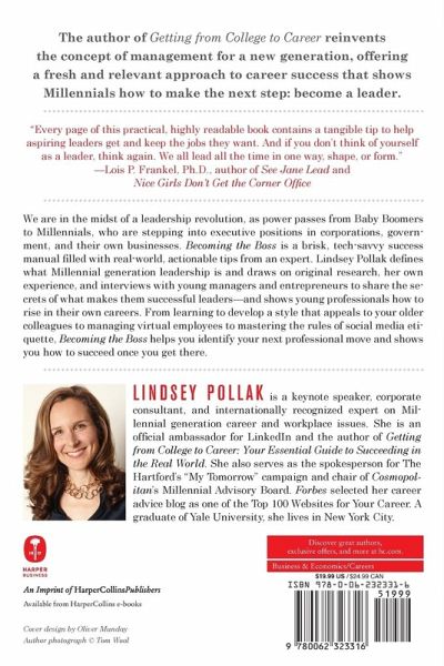 The author of Getting from College to Career reinvents the concept of management for a new generation, offering a fresh and relevant approach to career success that shows them how to make the next step: becoming a leader. We are in the midst of a leadership revolution, as power passes from Baby Boomers to Millennials. All grown up, the highly educated Generation Y is moving into executive positions in corporations and government, as well as running their own businesses, where they are beginning to have a profound impact that will last for decades. Written exclusively for Gen Y readers to address their unique needs, Becoming the Boss is a brisk, tech savvy success manual filled with real-world, actionable tips, from an expert they respect and relate to. Lindsey Pollak defines what leadership is and draws on original research, her own extensive experience, and interviews with newly minted Gen Y managers and entrepreneurs around the world to share the secrets of what makes them successful leaders—and shows young professionals how to use that knowledge to rise in their own careers. From learning to develop a style that appeals to your older colleagues, to discovering the key trends affecting your career, to mastering the classic rules of excellence that never go out of style, Becoming the Boss helps you identify your next professional move and shows you how to get there.
