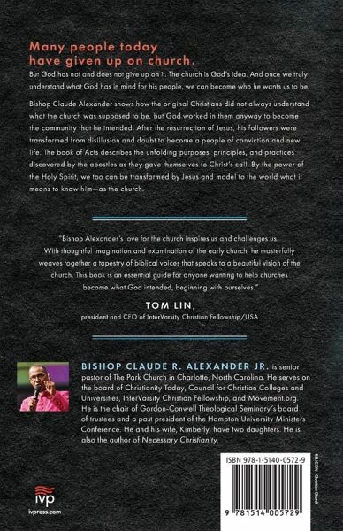 Many today have given up on church. But God has not and does not give up on the church. The church is God's idea. And once we truly understand what God has in mind for his people, we can become who he wants us to be. Bishop Claude Alexander shows how the original Christians did not always understand what the church was supposed to be, but God worked in them anyway to become the community that he intended. After the resurrection of Jesus, his followers were transformed from disillusion and doubt to become a people of conviction and new life. The book of Acts describes the unfolding purposes, principles, and practices discovered by the apostles as they gave themselves to Christ's call. By the power of the Holy Spirit, we too can be transformed by Jesus and model to the world what it means to know him--as the church.