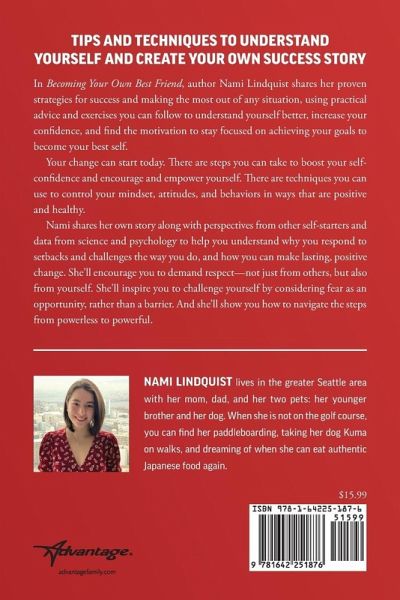 Tips And Techniques To Understand Yourself And Create Your Own Success Story In Becoming Your Own Best Friend, author Nami Lindquist shares her proven strategies for success and making the most out of any situation, using practical advice and exercises you can follow to understand yourself better, increase your confidence, and find the motivation to stay focused on achieving your goals to become your best self. Your change can start today. There are steps you can take to boost your self-confidence and encourage and empower yourself. There are techniques you can use to control your mindset, attitudes, and behaviors in ways that are positive and healthy. Nami shares her own story along with perspectives from other self-starters and data from science and psychology to help you understand why you respond to setbacks and challenges the way you do, and how you can make lasting, positive change. She'll encourage you to demand respect-not just from others, but also from yourself. She'll inspire you to challenge yourself by considering fear as an opportunity, rather than a barrier. And she'll show you how to navigate the steps from powerless to powerful.