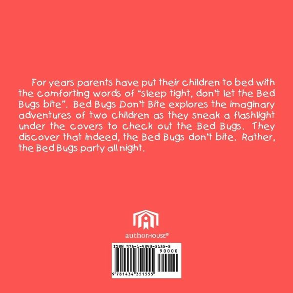 For years parents have put their children to bed with the comforting words of "sleep tight, don't let the Bed Bgs bite". Bed Bugs Don't Bite explores the imaginary adventures of two children as they sneak a flashlight under the covers to check out the Bed Bugs. They discover that indeed, the Bed Bugs don't bite. Rather, the Bed Bugs party all night.