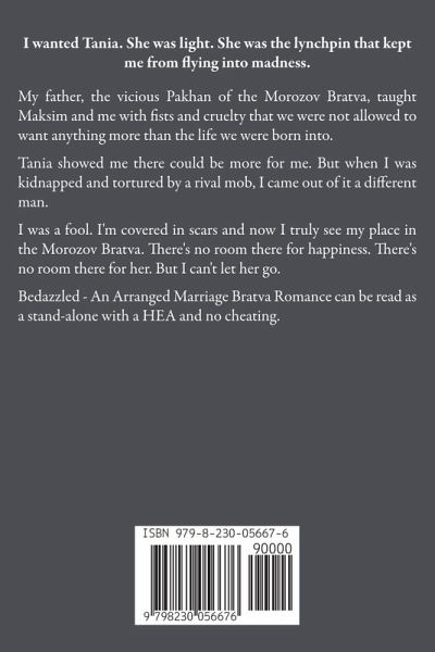 I wanted Tania. She was light. She was the lynchpin that kept me from flying into madness. My father taught Maksim and me with fists and cruelty that we were not allowed to want anything more than the life we were born into. Tania showed me there could be more for me. But when I was kidnapped and tortured by a rival mob, I came out of it a different man. I was a fool. I'm covered in scars and now I truly see my place in the Morozov Bratva. There's no room there for happiness. There's no room there for her. But I can't let her go. Bedazzled - An Arranged Marriage Bratva Romance can be read as a stand-alone with a HEA and no cheating.