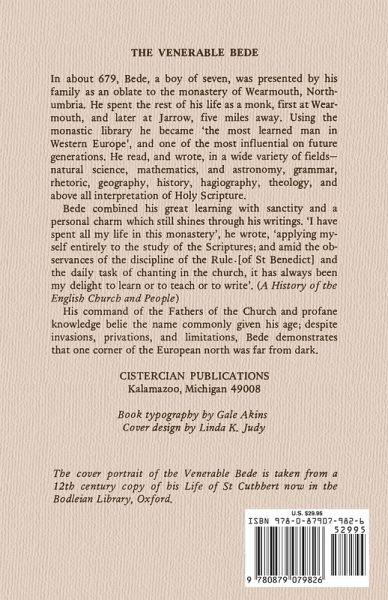 In about 679, Bede, a boy of seven, was presented by his family as an oblate to the monastery of Wearmouth, Northumbria. He spent the rest of his life as a monk, first at Wearmouth, and later at Jarrow, five miles away. Using the monastic library he became 'the most learned man in Western Europe', and one of the most influential on future generations. He read, and wrote, in a wide variety of fields--natural science, mathematics, and astronomy, grammar, rhetoric, geography, history, hagiography, theology, and above all interpretation of Holy Scripture. Bede combined his great learning with sanctity and a personal charm which still shines through his writings. His command of the Fathers of the Church and profane knowledge belie the name commonly given his age; despite invasions, privations, and limitations, Bede demonstrates that one corner of the European north was far from dark.