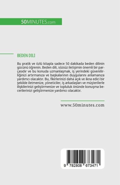 Bu pratik ve özlü kitapla sadece 50 dakikada beden dilinin gücünü ö¿renin. Beden dili, sözsüz ileti¿imin önemli bir parças¿d¿r ve bu konuda uzmanlämak, i¿ yerindeki güvenilirli¿inizi art¿rman¿za ve bäkalar¿n¿n duygular¿n¿ anlaman¿za yard¿mc¿ olacakt¿r. Bu, fikirlerinizi daha aç¿k ve ikna edici bir ¿ekilde iletmenize, yöneticiler, i¿ arkadälar¿ ve mü¿terilerle ili¿kilerinizi geli¿tirmenize ve topluluk önünde konu¿ma becerilerinizi geli¿tirmenize yard¿mc¿ olacakt¿r. Bu kitapta, beden diliniz üzerinde çal¿¿man¿n i¿ görü¿melerinde, sunumlarda ve müzakerelerde size nas¿l yard¿mc¿ olabilece¿ini ö¿reneceksiniz. Ayr¿ca, beden dilinizi konu¿tu¿unuz ki¿iye uyarlama konusunda faydal¿ ipuçlar¿ ve di¿er insanlar¿n hareketlerini, jestlerini ve ifadelerini yorumlama konusunda tavsiyeler içeriyor ve size ki¿ileraras¿ becerilerinizi geli¿tirmek ve daha net ileti¿im kurmak için ihtiyac¿n¿z olan araçlar¿ sunuyor.