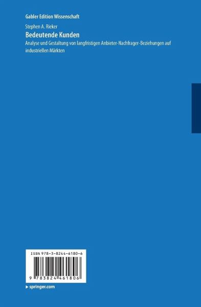 A. Einführung in die Problemstellung.- B. Anbieter-Nachfrager-Beziehungen auf industriellen Märkten und deren Einfluß auf das Verhalten in Beziehungen.- C. Die Identifikation bedeutender Kunden: Möglichkeiten zur Bestimmung der Kundenbedeutung.- D. Die Analyse des Bindungspotentials des Anbieters gegenüber bedeutenden Kunden.- E. Probleme bei der Gestaltung der Beziehung gegenüber bedeutenden Kunden: Eine empirische Analyse.- F. Umsetzung des Beziehungsmanagements mit bedeutenden Kunden: Ein Konzept zur Realisierung einzelkundenbezogenen Wiederverkaufsverhaltens.- G. Organisation des Beziehungsmanagements mit bedeutenden Kunden: Alternative Möglichkeiten zur Institutionalisierung im Unternehmen.- H. Zusammenfassung und Ausblick.