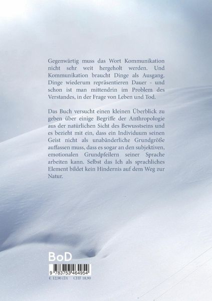 Geisteswissenschaftliche Strömungen des frühen 20. Jahrhunderts wie etwa die Phänomenologie, Hermeneutik oder Lebensphilosophie führten Ernst Cassirer zu der fragenden Annahme, ob man sich vielleicht schon auf dem Weg zu einer Anthropologie befinde. Philosophische Anthropologie gab es damals bereits, also was konnte Cassirer damit meinen? - Dieses Buch versucht eine Anthropologie als Abhandlung der Sprache, als Darstellung relevanter Begriffe und basiert dabei wesentlich auf persönlichen Erfahrungen des Autors, die aber für den Inhalt keine Rolle spielen. Und es wendet sich an Menschen mit verschiedensten Interessen, ob lebenspraktisch, spirituell oder einfach nur sprachlich-theoretisch.