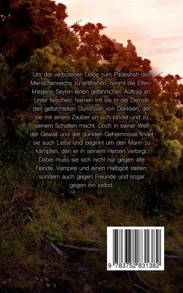 Um der verbotenen Liebe zum Padeshah des Menschenreichs zu entfliehen, nimmt die Elfenkriegerin Seynin einen gefährlichen Auftrag an. Unter falschem Namen tritt sie in die Dienste des gefürchteten Dunshaan von Dakktien, der sie mit einem Zauber an sich bindet und zu seinem Schatten macht. Doch in seiner Welt der Gewalt und der dunklen Geheimnisse findet sie auch Liebe und beginnt um den Mann zu kämpfen, den er in seinem Herzen verbirgt. Dabei muss sie sich nicht nur gegen alte Feinde, Vampire und einen Halbgott stellen, sondern auch gegen Freunde und sogar gegen ihn selbst.