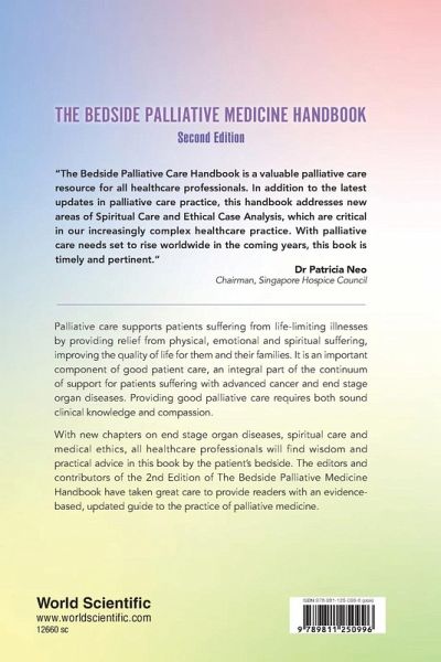 Palliative care supports patients suffering from life-limiting illnesses by providing relief from physical, emotional and spiritual suffering, improving the quality of life for them and their families. It is an important component of good patient care, an integral part of the continuum of support for patients suffering with advanced cancer and end stage organ diseases. Providing good palliative care requires both sound clinical knowledge and compassion. With new chapters on end stage organ diseases, spiritual care and medical ethics, all healthcare professionals will find wisdom and practical advice in this book by the patient's bedside. The editors and contributors of the 2nd Edition of The Bedside Palliative Medicine Handbook have taken great care to provide readers with an evidence-based, updated guide to the practice of palliative medicine.