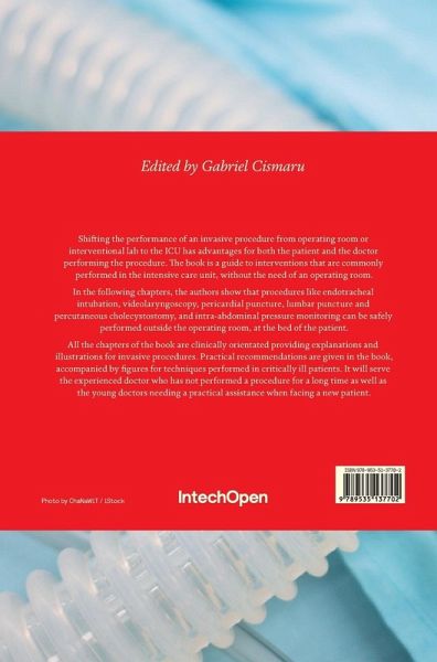 Shifting the performance of an invasive procedure from operating room or interventional lab to the ICU has advantages for both the patient and the doctor performing the procedure. The book is a guide to interventions that are commonly performed in the intensive care unit, without the need of an operating room. In the following chapters, the authors show that procedures like endotracheal intubation, videolaryngoscopy, pericardial puncture, lumbar puncture and percutaneous cholecystostomy, and intra-abdominal pressure monitoring can be safely performed outside the operating room, at the bed of the patient. All the chapters of the book are clinically orientated providing explanations and illustrations for invasive procedures. Practical recommendations are given in the book, accompanied by figures for techniques performed in critically ill patients. It will serve the experienced doctor who has not performed a procedure for a long time as well as the young doctors needing a practical assistance when facing a new patient.