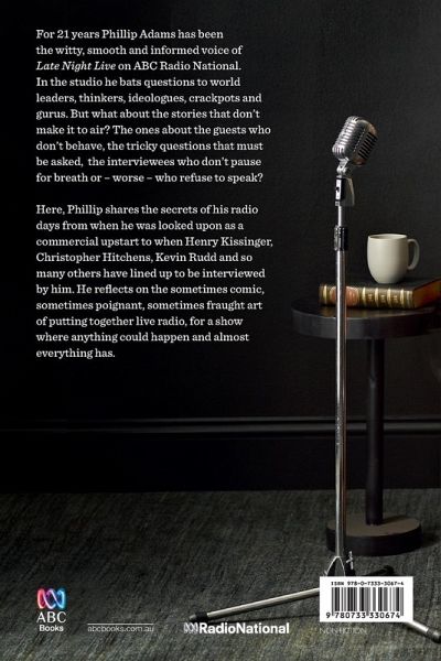 For 21 years Phillip Adams has been the witty, smooth and informed voice of Late Night Live on ABC Radio National. In the studio he bats questions to world leaders, thinkers, ideologues, crackpots and gurus. But what about the stories that don't make it to air? the ones about the guests who don't behave, the tricky questions that must be asked, the interviewees who don't pause for breath or - worse - who refuse to speak? Here, Phillip shares the secrets of his radio days from when he was looked upon as a commercial upstart to when Henry Kissinger, Christopher Hitchens, Kevin Rudd and so many others have lined up to be interviewed by him. He reflects on the sometimes comic, sometimes poignant, sometimes fraught art of putting together live radio, for a show where anything could happen and almost everything has.