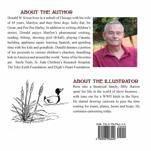 Donald W. Kruse lives in a suburb of Chicago with his wife of 44 years, Marilyn, and their three dogs: Itchy Rat, Sir Oscar, and Pee-Pee Harley. In addition to writing children's stories, Donald enjoys Marilyn's phenomenal cooking, reading, fishing, shooting pool (8-ball), playing Canasta, building, appliance repair, learning Spanish, and spending time with his kids and grandkids. Donald has written and published 33 children's books, and still counting! He believes in giving back, and he donates a portion of his proceeds to various children's charities, benefiting kids in America and around the world. Some of his favorite charities are: Smile Train, St. Jude Children's Research Hospital, The Toby Keith Foundation, and Elijah's Heart Foundation.