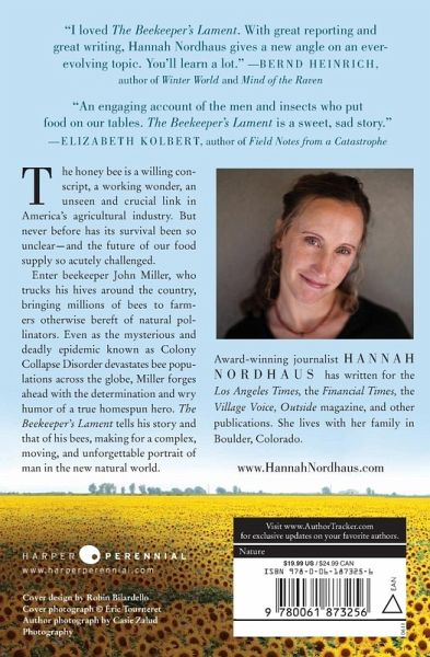 The honey bee is a willing conscript, a working wonder, an unseen and crucial link in America's agricultural industry. But never before has its survival been so unclear?and the future of our food supply so acutely challenged. Enter beekeeper John Miller, who trucks his hives around the country, bringing millions of bees to farmers otherwise bereft of natural pollinators. Even as the mysterious and deadly epidemic known as Colony Collapse Disorder devastates bee populations across the globe, Miller forges ahead with the determination and wry humor of a true homespun hero. The Beekeeper's Lament tells his story and that of his bees, making for a complex, moving, and unforgettable portrait of man in the new natural world.