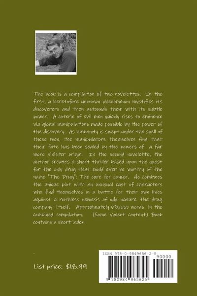 The book is a compilation of two novelettes. In the first, a heretofore unknown phenomenon mystifies its discoverers and then astounds them with its subtle power. Global manipulations are made possible by the power of the discovery. As humanity is swept under the spell of these men, the manipulators find that their own fates have been sealed by powers of a far more sinister origin. The second book is the short "The Drug". "The voice wafted over the rooftops of the buildings that covered the low-lying westward section that lay ahead of them. The couple looked at one another, each face primed to posit a question, unsure of what it should be. They walked a hundred yards further, descending to a flat section of the road, and another voice came along to them in the cold wind. The answer to the first call chanted the same words. Up overhead, the sinking sky smothered them with the dark gray drabness of a late northern fall evening. Compilation has approx 63,000 words. (Some violent content) Short index