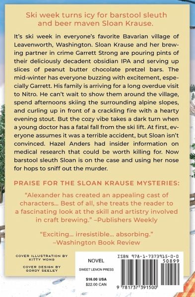 Amateur sleuth Sloan Krause is back to brewing in this latest installment of Ellie Alexander's popular cozy mystery series, Beer and Loathing. Includes recipes and a travel guide to Leavenworth! It's ski week in everyone's favorite Bavarian village of Leavenworth, Washington. Sloan Krause and her brewing partner in crime Garrett Strong are pouring pints of their deliciously decadent obsidian IPA and serving up slices of peanut butter chocolate pretzel bars. The mid-winter has everyone buzzing with excitement, especially Garrett. His family is arriving for a long overdue visit to Nitro. He can't wait to show them around the village, spend afternoons skiing the surrounding alpine slopes, and curling up in front of a crackling fire with a hearty evening stout. But the cozy vibe takes a dark turn when a young doctor has a fatal fall from the ski lift. At first, everyone assumes it was a terrible accident, but Sloan isn't convinced. Hazel Anders had insider information on medical research that could be worth killing for. Now barstool sleuth Sloan is on the case and using her nose for hops to sniff out the murder.