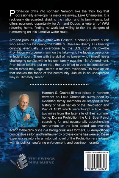 Prohibition drifts into northern Vermont like the thick fog that occasionally envelops its major waterway, Lake Champlain. It is recklessly disregarded, dividing the nation and its family units, but offers economic opportunity for Armand Dubuc, a veteran of WWI returning home, finding no work but willing to risk the dangers of rumrunning on this lucrative water route. Armand pursues a love affair with Cosette, a comely French nurse who saved his life during the battle of Chateau-Thierry. His boating cunning eventually is overcome by the U.S. Boat Patrol-the Prohibition enforcement arm on the lake-and he faces prosecution in federal court. There with the skill of his lawyer, who himself has a challenging conflict within his own family over the 18th Amendment, Prohibition itself is put on trial, the jury is led to vote its conscience, which forces the judge-mired in his own misdeeds-to take action that shakes the fabric of the community. Justice in an unexpected way is ultimately served.