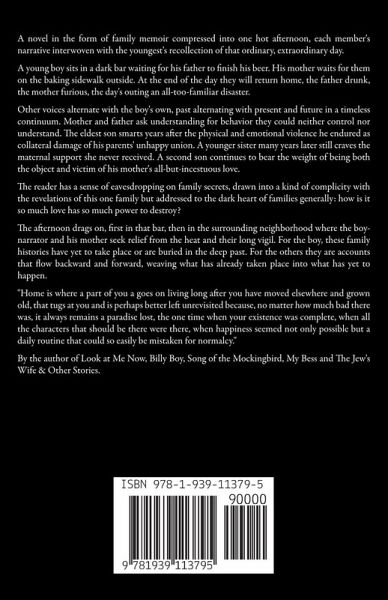 A novel in the form of family memoir compressed into one hot afternoon, each member's narrative interwoven with the youngest's recollection of that ordinary, extraordinary day. A young boy sits in a dark bar waiting for his father to finish his beer. His mother waits for them on the baking sidewalk outside. At the end of the day they will return home, the father drunk, the mother furious, the day's outing an all-too-familiar disaster. Other voices alternate with the boy's own, past alternating with present and future in a timeless continuum. Mother and father ask understanding for behavior they could neither control nor understand. The eldest son smarts years after the physical and emotional violence he endured as collateral damage of his parents' unhappy union. A younger sister many years later still craves the maternal support she never received. A second son continues to bear the weight of being both the object and victim of his mother's all-but-incestuous love. The reader has a sense of eavesdropping on family secrets, drawn into a kind of complicity with the revelations of this one family but addressed to the dark heart of families generally: how is it so much love has so much power to destroy? The afternoon drags on, first in that bar, then in the surrounding neighborhood where the boy-narrator and his mother seek relief from the heat and their long vigil. For the boy, these family histories have yet to take place or are buried in the deep past. For the others they are accounts that flow backward and forward, weaving what has already taken place into what has yet to happen. "Home is where a part of you a goes on living long after you have moved elsewhere and grown old, that tugs at you and is perhaps better left unrevisited because, no matter how much bad there was, it always remains a paradise lost, the one time when your existence was complete, when all the characters that should be there were there, when happiness seemed not only possible but a daily routine that could so easily be mistaken for normalcy." By the author of Look at Me Now, Billy Boy, Song of the Mockingbird, My Bess and The Jew's Wife & Other Stories.