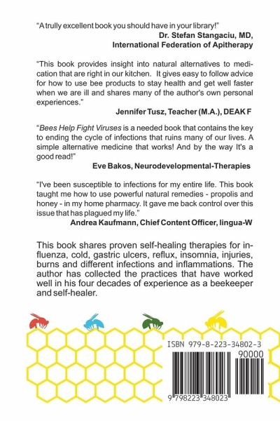 The use of honey, propolis, and bee venom helps in many conditions caused by viruses, bacteria, fungi either by destroying them or by stimulating our immune system. The author has collected the practices that have worked well in his four decades of experience as a beekeeper and self-healer for bacterial and viral infections like influenza, colds, gastric ulcers, reflux, insomnia, injuries, burns. This is a second updated edition with 40 pages more content including the instruction for a massage technique with bee venom cream, + an interview with a leading apitherapist "The title of this book may be provoking – writes the author in the introduction – but there is valid scientific proof in vivo that the compound of bee venom, called melittin can destroy the HIV-virus, Hepatitis-B- and C viruses and it can kill tumor cells." You'll learn from the book: Why the smart and regular consumption of honey is the best choice for protecting the balance of gut microbiota ecosystem, reducing high cholesterol levels, in some cases also obesity, getting rid of insomnia, improving blood sugar levels, and improving our immune system; How to use propolis as a powerful remedy for fighting bacterial. fungal and viral infections like gastric ulcers, influenza, colds, etc. How to prepare simple honey and propolis recipes/healthy and delicious substitutes for chocolates, sweets, and soft drinks. Why bee venom is a viable consideration for those suffering from long-lasting and chronic conditions like Lyme disease, multiple sclerosis, arthritis, other autoimmune diseases, aggravated influenza if controlled by an expert. Why some medical doctors propose bee venom and propolis in the recent pandemic for persons at the highest risk. You'll read about the science behind this suggestion. The author also describes how he keeps bees – besides in his apiary - in an observation hive that he uses for educational purposes and for self-healing. Reviews: A truly excellent book that you should have in your library! - Dr. Stefan Stangaciu, MD, General Secretary of the International Federation of Apitherapy This book provides insight into natural alternatives to medication that are right in our kitchen. It gives easy-to-follow advice on how to use bee products to stay healthy and get well faster when we are ill and shares many of the author's own personal experiences. - Jennifer Tusz, Teacher (M.A.) DEAK F Bees Help Fight Viruses is a needed book that contains the key to ending the cycle of infections that ruins many of our lives. A simple alternative medicine that works! And by the way, It's a good read! – Eve Bakos-Neurodevelopmental-Therapies I've been susceptible to flu and colds for my entire life. And then I met Mihaly: he taught me how to use propolis and honey in my home pharmacy. He also showed me how to take some hygienic measures I've never heard before. He gave me back control over this issue that has plagued my life. – Andrea Kaufmann, Chief Content Officer, lingua-W