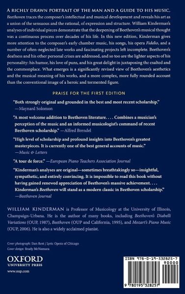 Combining musical insight with the most recent research, William Kinderman's Beethoven is both a richly drawn portrait of the man and a guide to his music. Kinderman traces the composer's intellectual and musical development from the early works written in Bonn to the Ninth Symphony and the late quartets, looking at compositions from different and original perspectives that show Beethoven's art as a union of sensuous and rational, of expression and structure. In analyses of individual pieces, Kinderman shows that the deepening of Beethoven's musical thought was a continuous process over decades of his life. In this new updated edition, Kinderman gives more attention to the composer's early chamber music, his songs, his opera Fidelio, and to a number of often-neglected works of the composer's later years and fascinating projects left incomplete. A revised view emerges from this of Beethoven's aesthetics and the musical meaning of his works. Rather than the conventional image of a heroic and tormented figure, Kinderman provides a more complex, more fully rounded account of the composer. Although Beethoven's deafness and his other personal crises are addressed, together with this ever-increasing commitment to his art, so too are the lighter aspects of his personality: his humor, his love of puns, his great delight in juxtaposing the exalted and the commonplace.