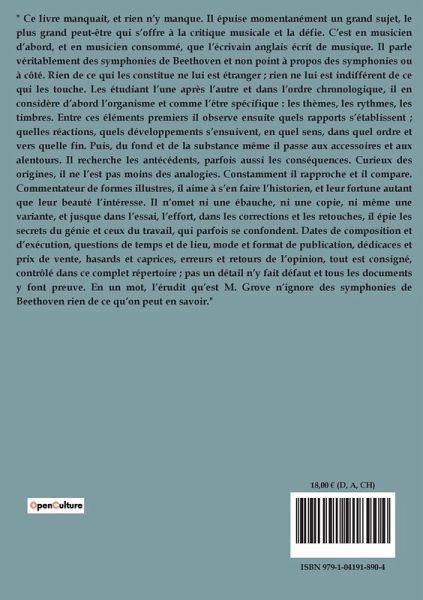 " Ce livre manquait, et rien n¿y manque. Il épuise momentanément un grand sujet, le plus grand peut-être qui s¿offre à la critique musicale et la défie. C¿est en musicien d¿abord, et en musicien consommé, que l¿écrivain anglais écrit de musique. Il parle véritablement des symphonies de Beethoven et non point à propos des symphonies ou à côté. Rien de ce qui les constitue ne lui est étranger ; rien ne lui est indifférent de ce qui les touche. Les étudiant l¿une après l¿autre et dans l¿ordre chronologique, il en considère d¿abord l¿organisme et comme l¿être spécifique : les thèmes, les rythmes, les timbres. Entre ces éléments premiers il observe ensuite quels rapports s¿établissent ; quelles réactions, quels développements s¿ensuivent, en quel sens, dans quel ordre et vers quelle fin. Puis, du fond et de la substance même il passe aux accessoires et aux alentours. Il recherche les antécédents, parfois aussi les conséquences. Curieux des origines, il ne l¿est pas moins des analogies. Constamment il rapproche et il compare. Commentateur de formes illustres, il aime à s¿en faire l¿historien, et leur fortune autant que leur beauté l¿intéresse. Il n¿omet ni une ébauche, ni une copie, ni même une variante, et jusque dans l¿essai, l¿effort, dans les corrections et les retouches, il épie les secrets du génie et ceux du travail, qui parfois se confondent. Dates de composition et d¿exécution, questions de temps et de lieu, mode et format de publication, dédicaces et prix de vente, hasards et caprices, erreurs et retours de l¿opinion, tout est consigné, contrôlé dans ce complet répertoire ; pas un détail n¿y fait défaut et tous les documents y font preuve. En un mot, l¿érudit qüest M. Grove n¿ignore des symphonies de Beethoven rien de ce qüon peut en savoir."