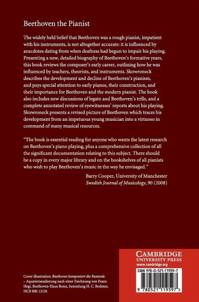 The widely held belief that Beethoven was a rough pianist, impatient with his instruments, is not altogether accurate: it is influenced by anecdotes dating from when deafness had begun to impair his playing. Presenting a detailed biography of Beethoven's formative years, this book reviews the composer's early career, outlining how he was influenced by teachers, theorists and instruments. Skowroneck describes the development and decline of Beethoven's pianism, and pays special attention to early pianos, their construction and their importance for Beethoven and the modern pianist. The book also includes discussions of legato and Beethoven's trills, and a complete annotated review of eyewitnesses' reports about his playing. Skowroneck presents a revised picture of Beethoven which traces his development from an impetuous young musician into a virtuoso in command of many musical resources.