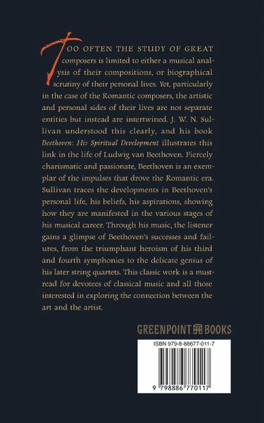 Too often the study of great composers is limited to either a musical analysis of their compositions, or biographical scrutiny of their personal lives. Yet, particularly in the case of the Romantic composers, the artistic and personal sides of their lives are not separate entities but instead are intertwined. J. W. N. Sullivan understood this clearly, and his book Beethoven: His Spiritual Development illustrates this link in the life of Ludwig van Beethoven. Fiercely charismatic and passionate, Beethoven is an exemplar of the impulses that drove the Romantic era. Sullivan traces the developments in Beethoven's personal life, his beliefs, his aspirations, showing how they are manifested in the various stages of his musical career. Through his music, the listener gains a glimpse of Beethoven's successes and failures, from the triumphant heroism of his third and fourth symphonies to the delicate genius of his later string quartets. This classic work is a must-read for devotees of classical music and all those interested in exploring the connection between the art and the artist.
