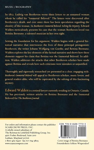 In this thoroughly and rigorously researched book, Edward Walden carefully and meticulously presents his case that the mysterious woman known as Beethoven's 'Immortal Beloved' was Bettina Brentano, an artistic and talented musician in her own right.