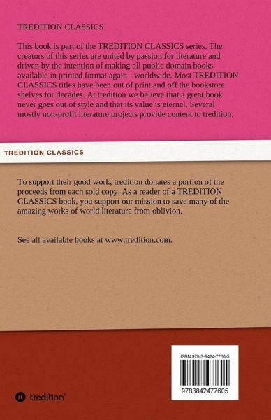 This book is part of the TREDITION CLASSICS series. The creators of this series are united by passion for literature and driven by the intention of making all public domain books available in printed format again - worldwide. At tredition we believe that a great book never goes out of style. Several mostly non-profit literature projects provide content to tredition. To support their good work, tredition donates a portion of the proceeds from each sold copy. As a reader of a TREDITION CLASSICS book, you support our mission to save many of the amazing works of world literature from oblivion.